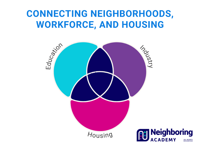 As opposed to creating a new private school, the Neighboring Academy operates within existing school systems to link education, industry, and housing to prepare students to responsibly enter a local neighborhood while equipping them to own their own homes.